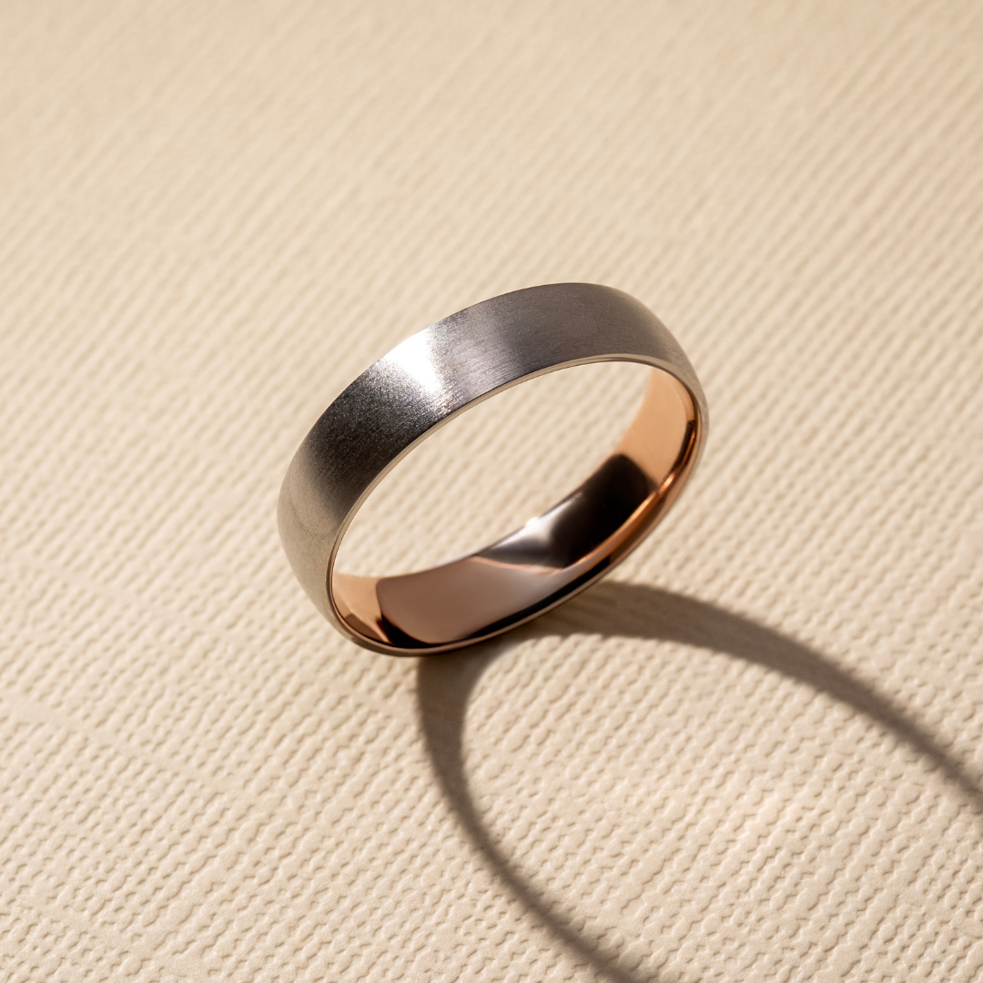 5.00MM Two Tone Low Half Round Brushed Wedding Ring | Affinity Diamonds