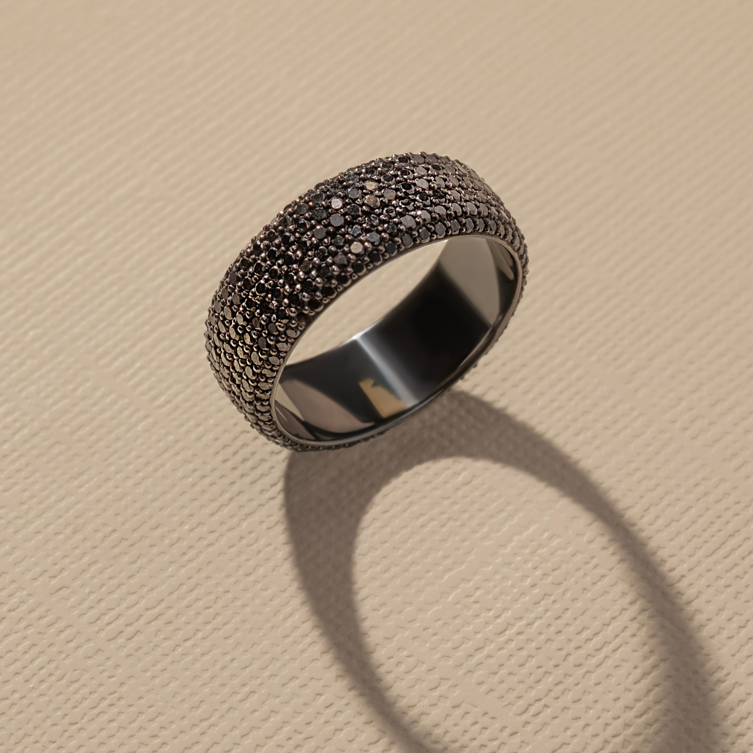 8.00MM Honeycomb Black Diamond Ring